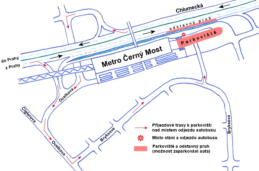 nad stáním (příjezd z ulice Bryksova), popř. odstavný pruh přímo v Chlumecké.